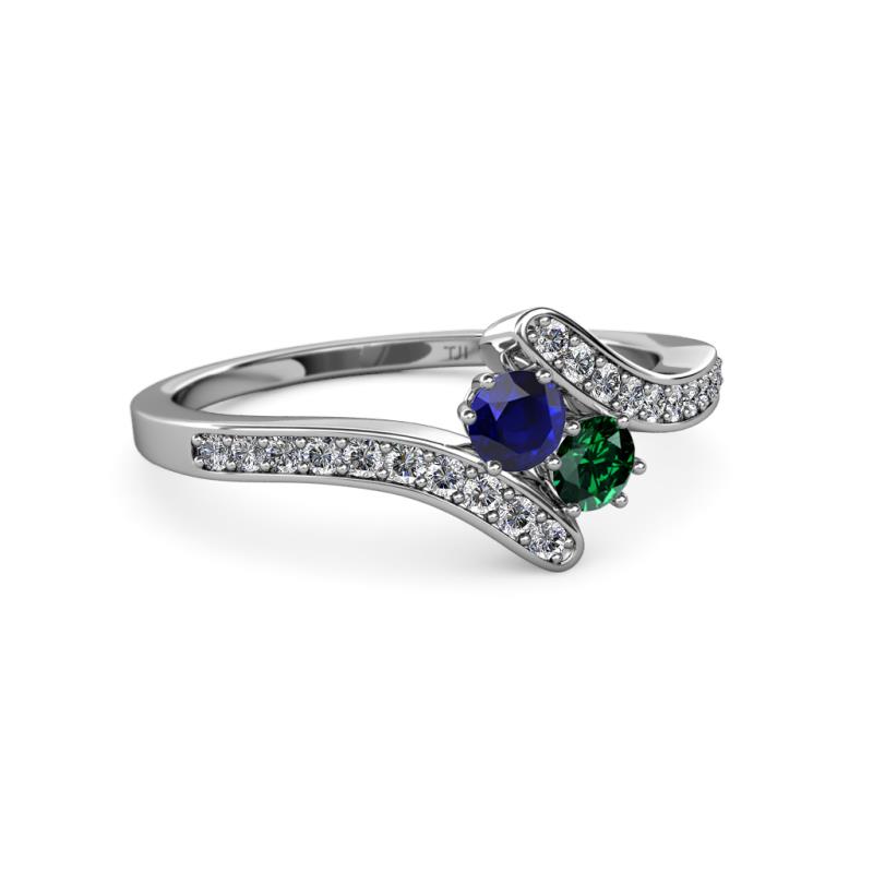 Blue Sapphire and Emerald 2 Stone with Side Diamonds Womens Bypass Engagement Ring 0.69 ctw 14K White Gold More Details ...