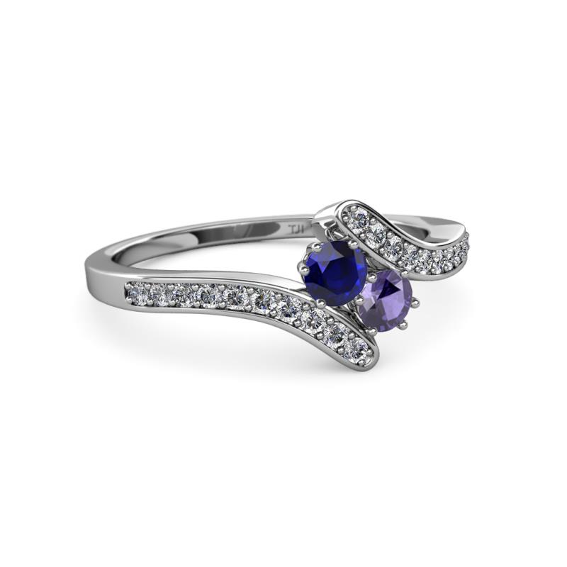 Blue Sapphire and Iolite 2 Stone with Side Diamonds Womens Bypass Engagement Ring 0.69 ctw 14K White Gold More Details ...