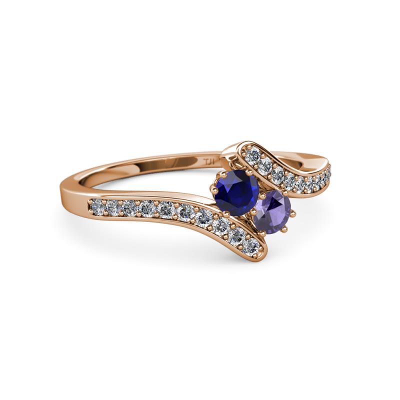 Blue Sapphire and Iolite 2 Stone with Side Diamonds Womens Bypass Engagement Ring 0.69 ctw 14K Rose Gold More Details ...