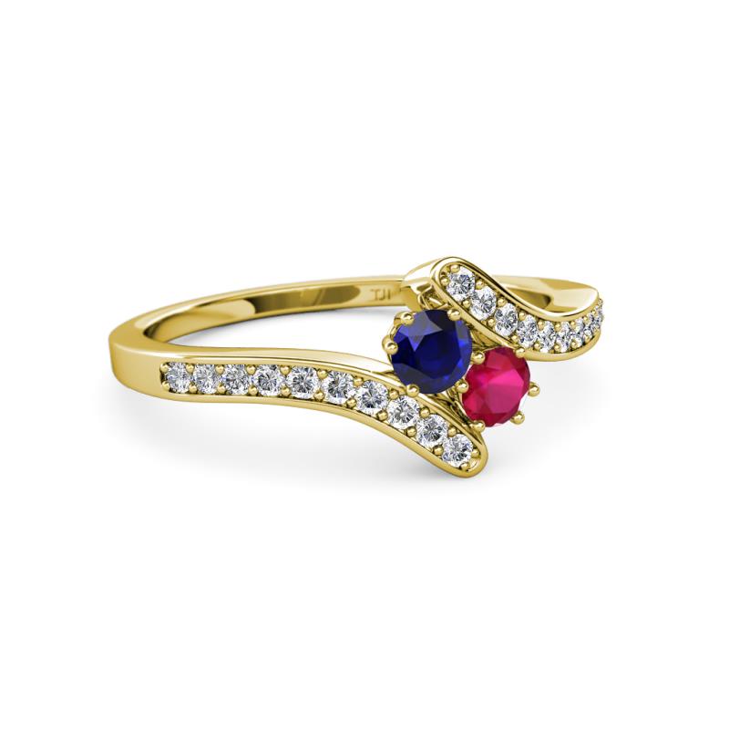 Blue Sapphire and Ruby 2 Stone with Side Diamonds Womens Bypass Engagement Ring 0.72 ctw 14K Yellow Gold More Details ...