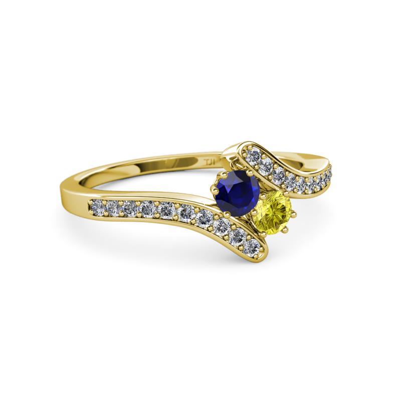 Blue Sapphire and Yellow Diamond 2 Stone with Side Diamonds Womens Bypass Engagement Ring 0.71 ctw 14K Yellow Gold More Details ...