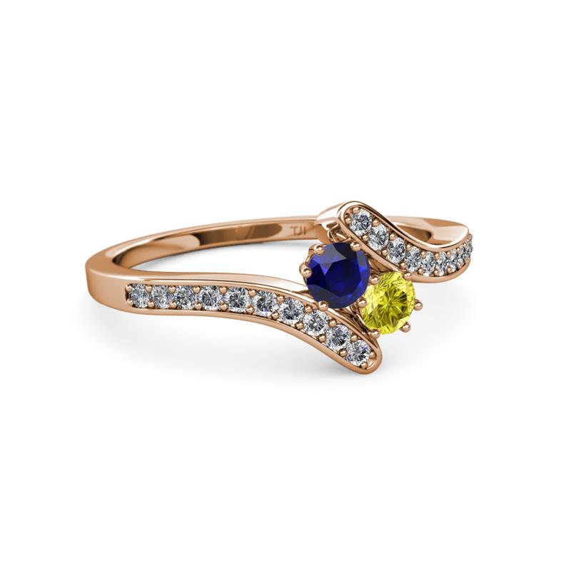 Blue Sapphire and Yellow Diamond 2 Stone with Side Diamonds Womens Bypass Engagement Ring 0.71 ctw 14K Rose Gold More Details ...