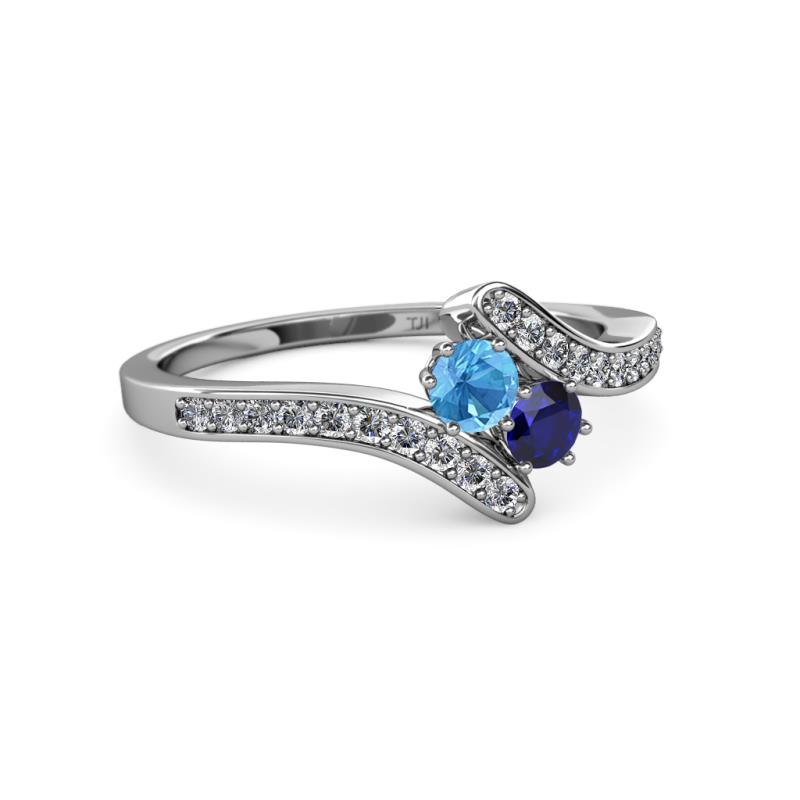 Blue Topaz and Blue Sapphire 2 Stone with Side Diamonds Womens Bypass Engagement Ring 0.73 ctw 14K White Gold More Details ...