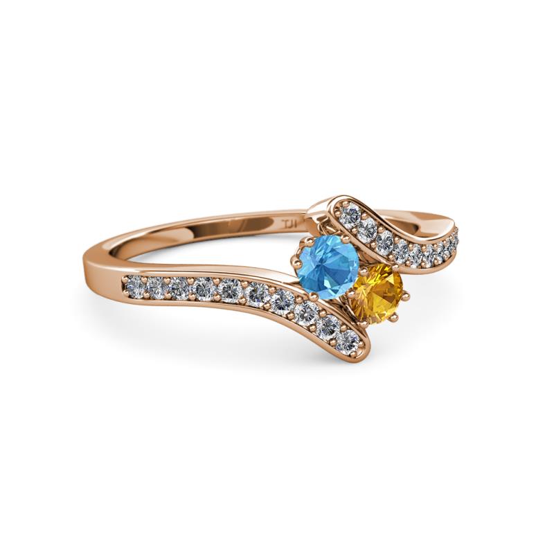 Blue Topaz and Citrine 2 Stone with Side Diamonds Womens Bypass Engagement Ring 0.70 ctw 14K Rose Gold More Details ...