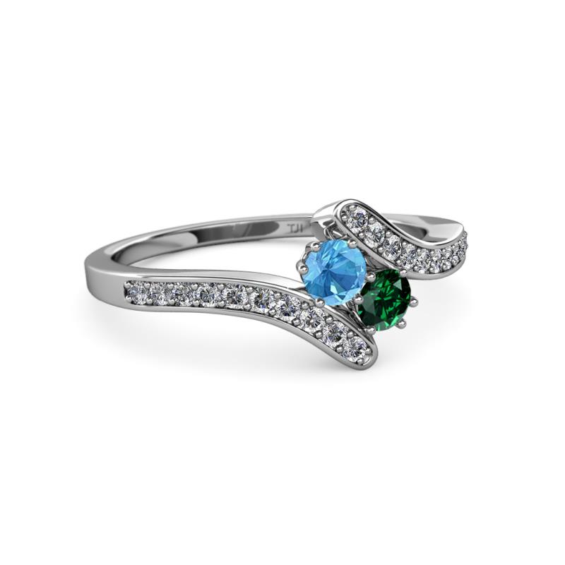 Blue Topaz and Emerald 2 Stone with Side Diamonds Womens Bypass Engagement Ring 0.70 ctw 14K White Gold More Details ...