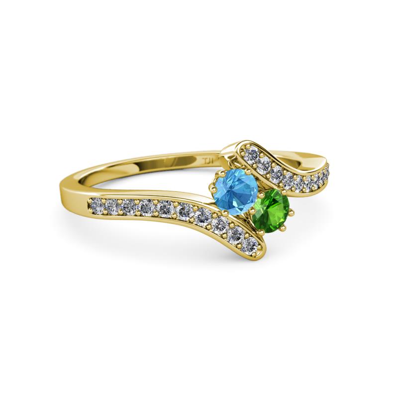 Blue Topaz and Green Garnet 2 Stone with Side Diamonds Womens Bypass Engagement Ring 0.75 ctw 14K Yellow Gold More Details ...