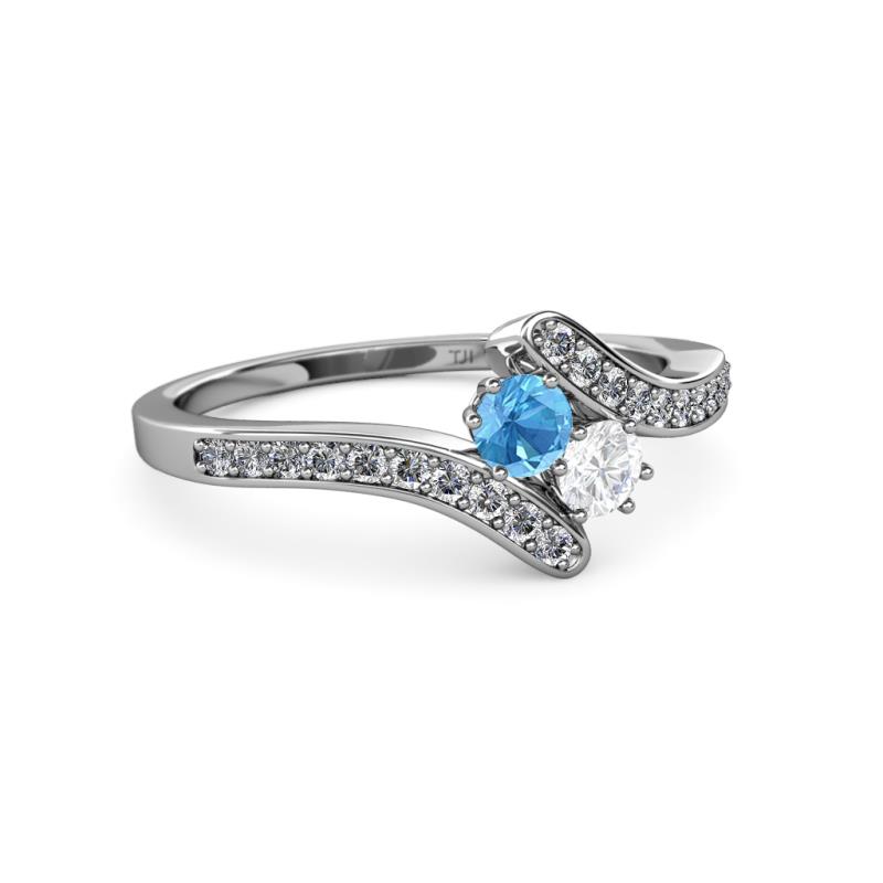 Blue Topaz and White Sapphire 2 Stone with Side Diamonds Womens Bypass Engagement Ring 0.73 ctw 14K White Gold More Details ...
