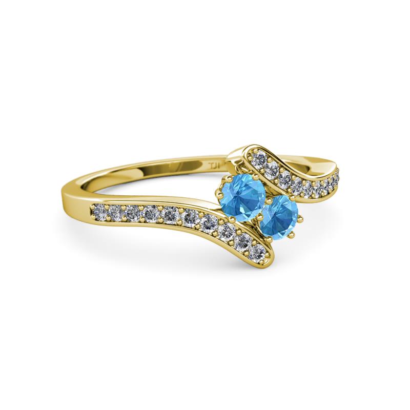 Blue Topaz 2 Stone with Side Diamonds Womens Bypass Engagement Ring 0.74 ctw 14K Yellow Gold More Details ...