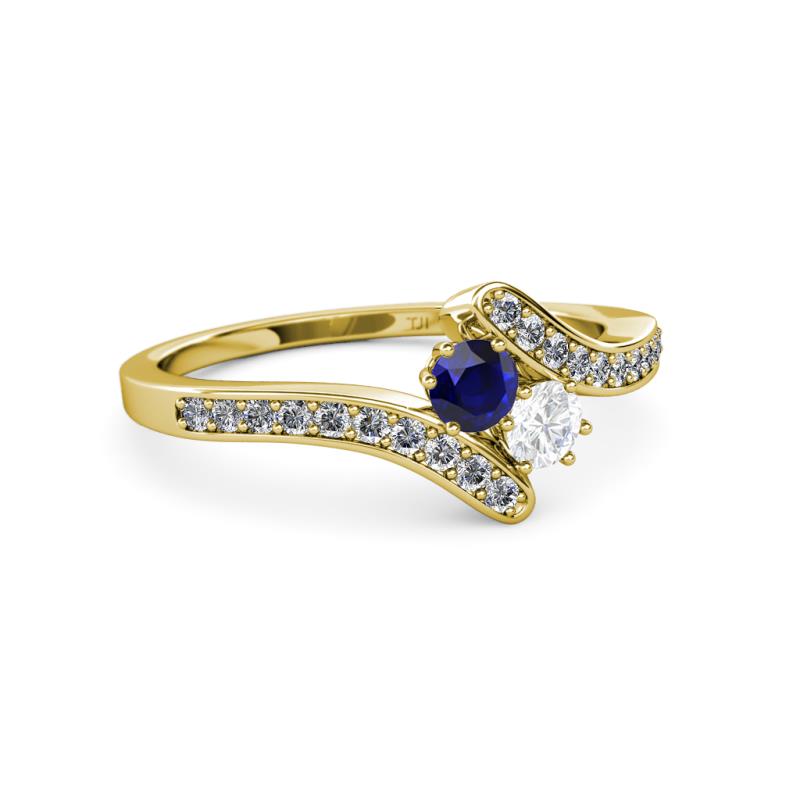 Blue and White Sapphire 2 Stone with Side Diamonds Womens Bypass Engagement Ring 0.72 ctw 14K Yellow Gold More Details ...