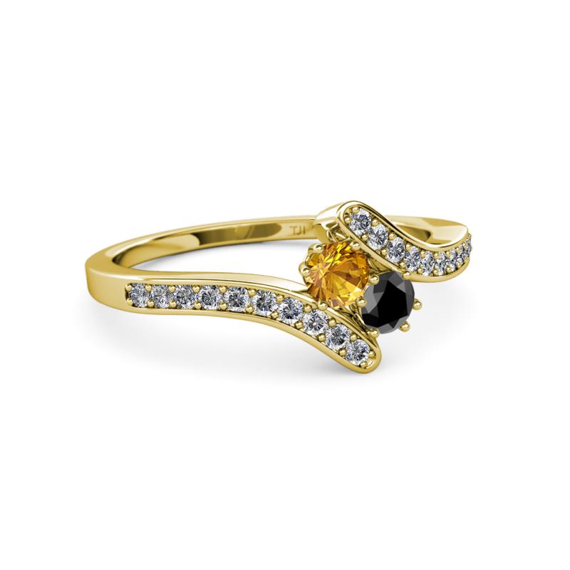 Citrine and Black Diamond 2 Stone with Side Diamonds Womens Bypass Engagement Ring 0.69 ctw 14K Yellow Gold More Details ...