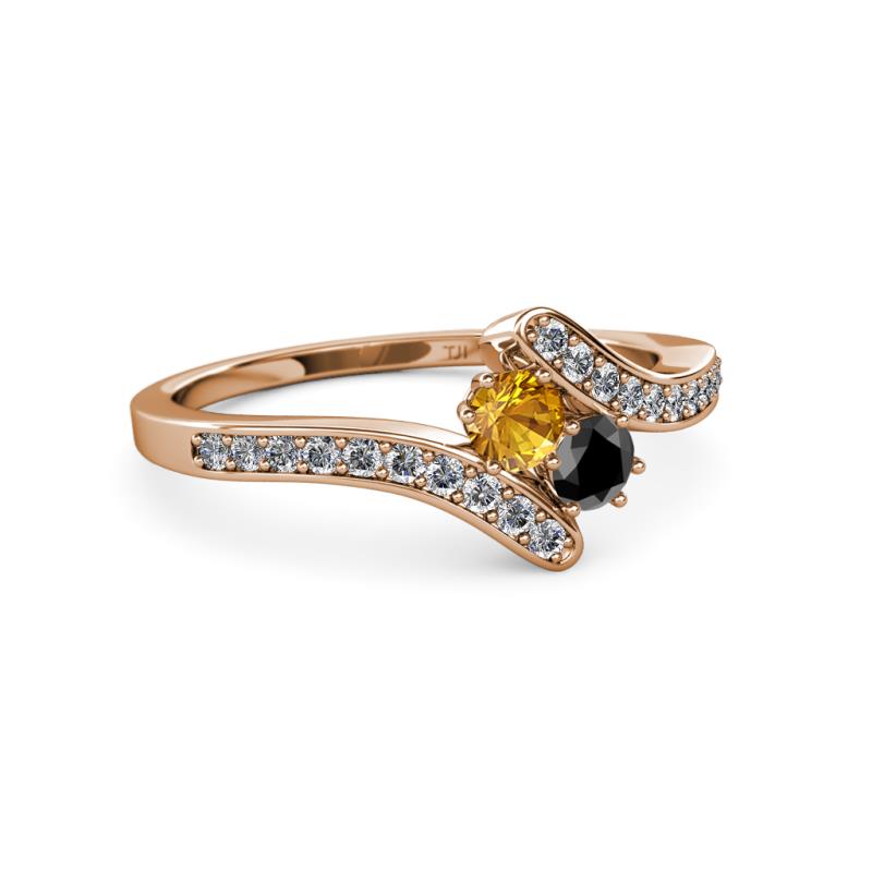 Citrine and Black Diamond 2 Stone with Side Diamonds Womens Bypass Engagement Ring 0.69 ctw 14K Rose Gold More Details ...