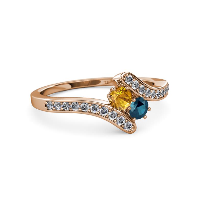 Citrine and Blue Diamond 2 Stone with Side Diamonds Womens Bypass Engagement Ring 0.68 ctw 14K Rose Gold More Details ...