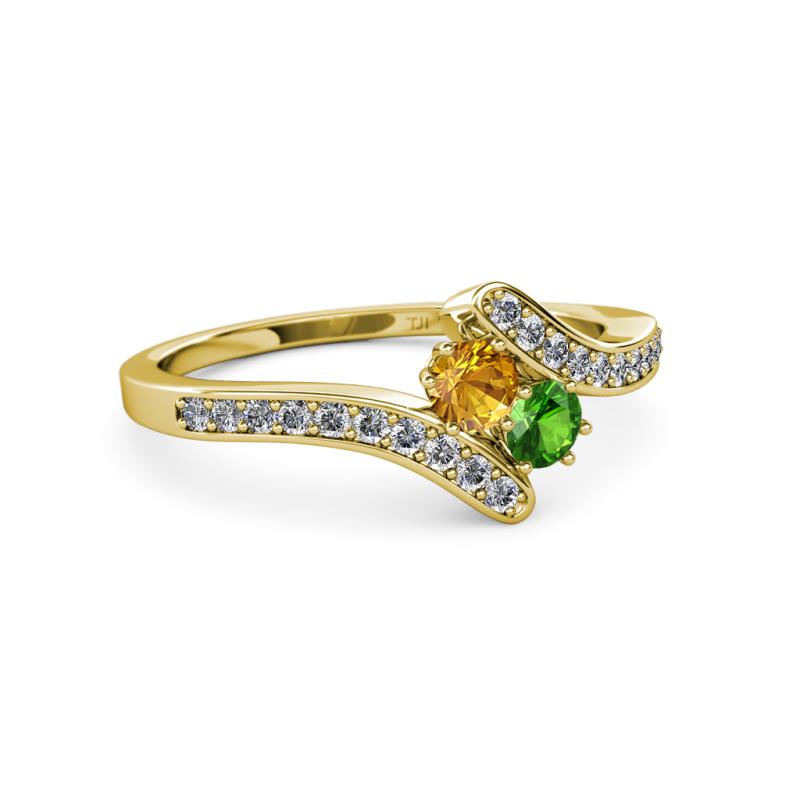 Citrine and Green Garnet 2 Stone with Side Diamonds Womens Bypass Engagement Ring 0.71 ctw 14K Yellow Gold More Details ...