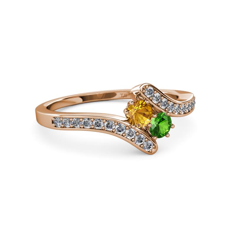 Citrine and Green Garnet 2 Stone with Side Diamonds Womens Bypass Engagement Ring 0.71 ctw 14K Rose Gold More Details ...