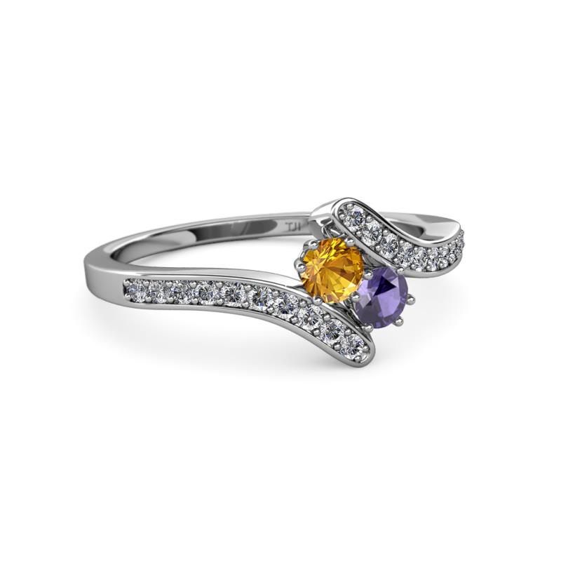 Citrine and Iolite 2 Stone with Side Diamonds Womens Bypass Engagement Ring 0.66 ctw 14K White Gold More Details ...