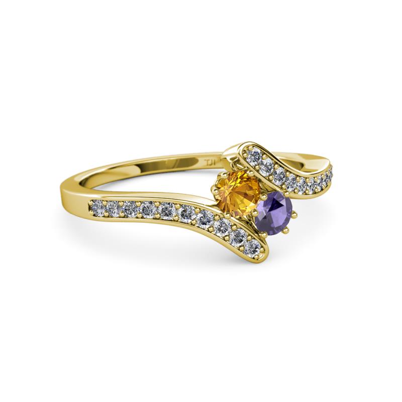 Citrine and Iolite 2 Stone with Side Diamonds Womens Bypass Engagement Ring 0.66 ctw 14K Yellow Gold More Details ...