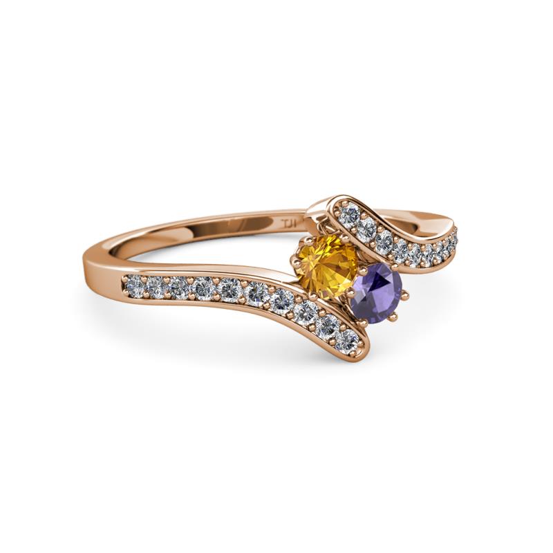 Citrine and Iolite 2 Stone with Side Diamonds Womens Bypass Engagement Ring 0.66 ctw 14K Rose Gold More Details ...