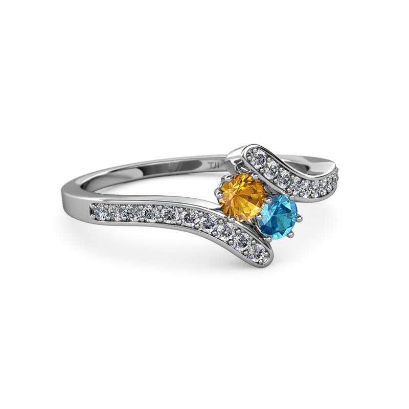 Citrine and London Blue Topaz 2 Stone with Side Diamonds Womens Bypass Engagement Ring 0.70 ctw 14K White Gold More Details ...