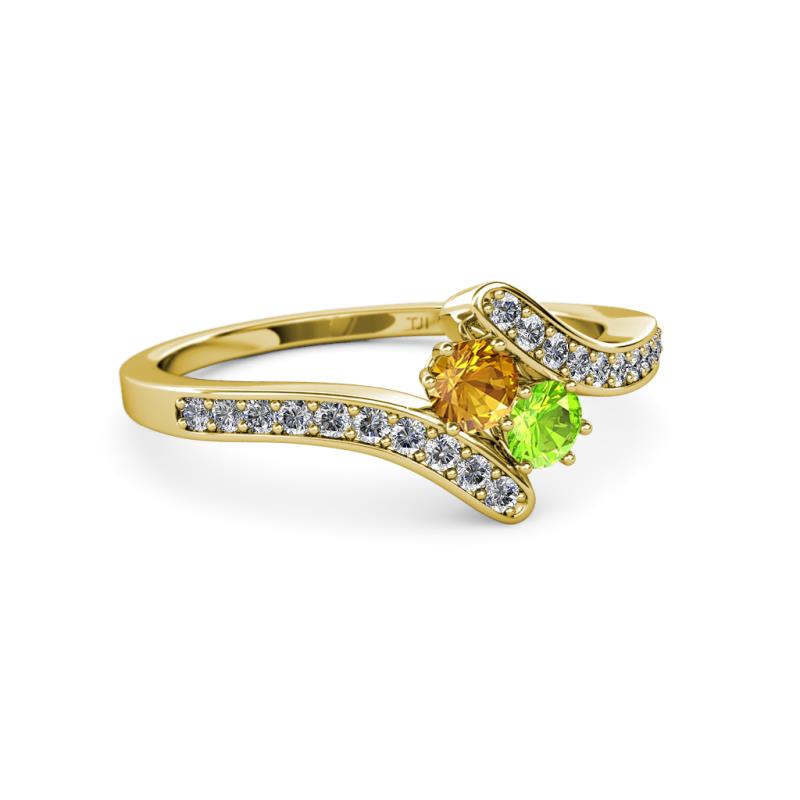 Citrine and Peridot 2 Stone with Side Diamonds Womens Bypass Engagement Ring 0.71 ctw 14K Yellow Gold More Details ...