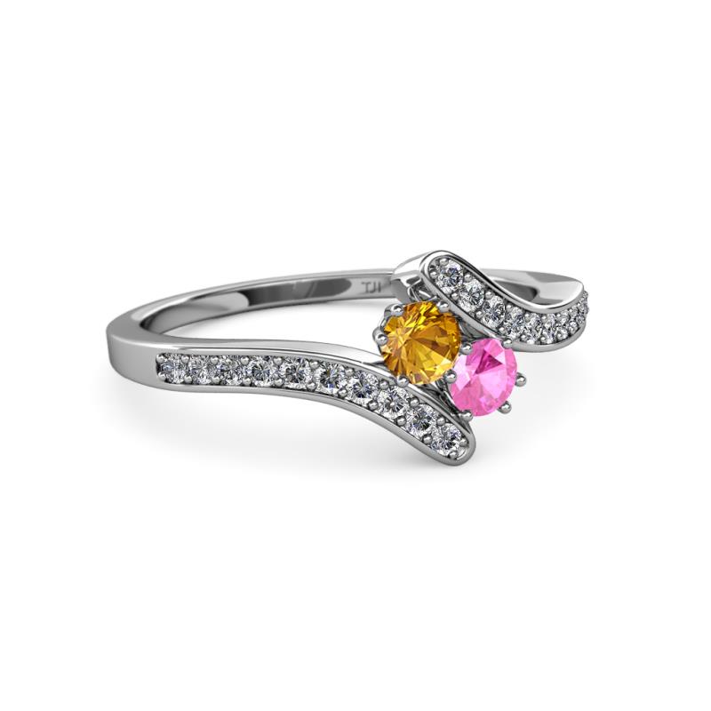 Citrine and Pink Sapphire 2 Stone with Side Diamonds Womens Bypass Engagement Ring 0.69 ctw 14K White Gold More Details ...