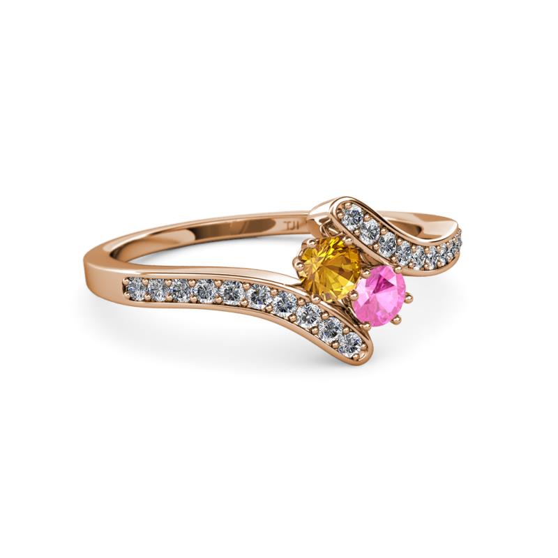 Citrine and Pink Sapphire 2 Stone with Side Diamonds Womens Bypass Engagement Ring 0.69 ctw 14K Rose Gold More Details ...