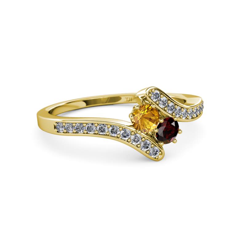 Citrine and Red Garnet 2 Stone with Side Diamonds Womens Bypass Engagement Ring 0.71 ctw 14K Yellow Gold More Details ...