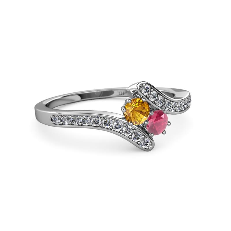 Citrine and Rhodolite Garnet 2 Stone with Side Diamonds Womens Bypass Engagement Ring 0.71 ctw 14K White Gold More Details ...