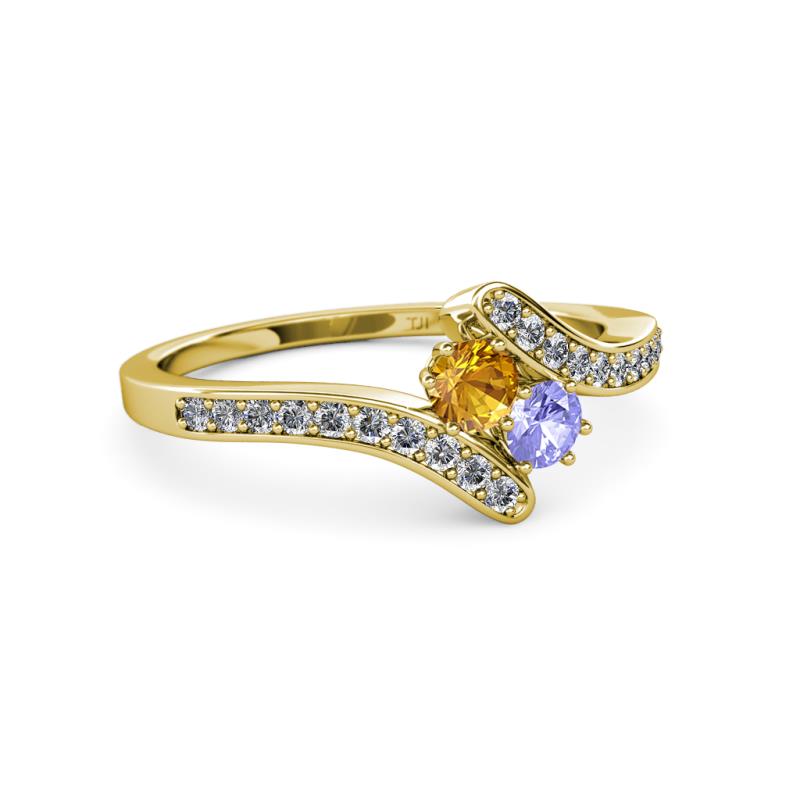 Citrine and Tanzanite 2 Stone with Side Diamonds Womens Bypass Engagement Ring 0.68 ctw 14K Yellow Gold More Details ...