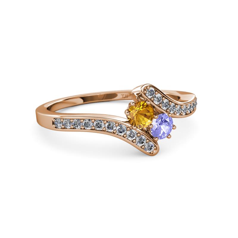 Citrine and Tanzanite 2 Stone with Side Diamonds Womens Bypass Engagement Ring 0.68 ctw 14K Rose Gold More Details ...