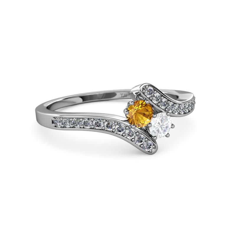 Citrine and White Sapphire 2 Stone with Side Diamonds Womens Bypass Engagement Ring 0.69 ctw 14K White Gold More Details ...