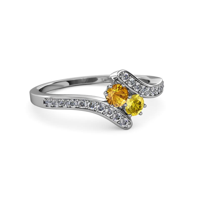 Citrine and Yellow Sapphire 2 Stone with Side Diamonds Womens Bypass Engagement Ring 0.69 ctw 14K White Gold More Details ...