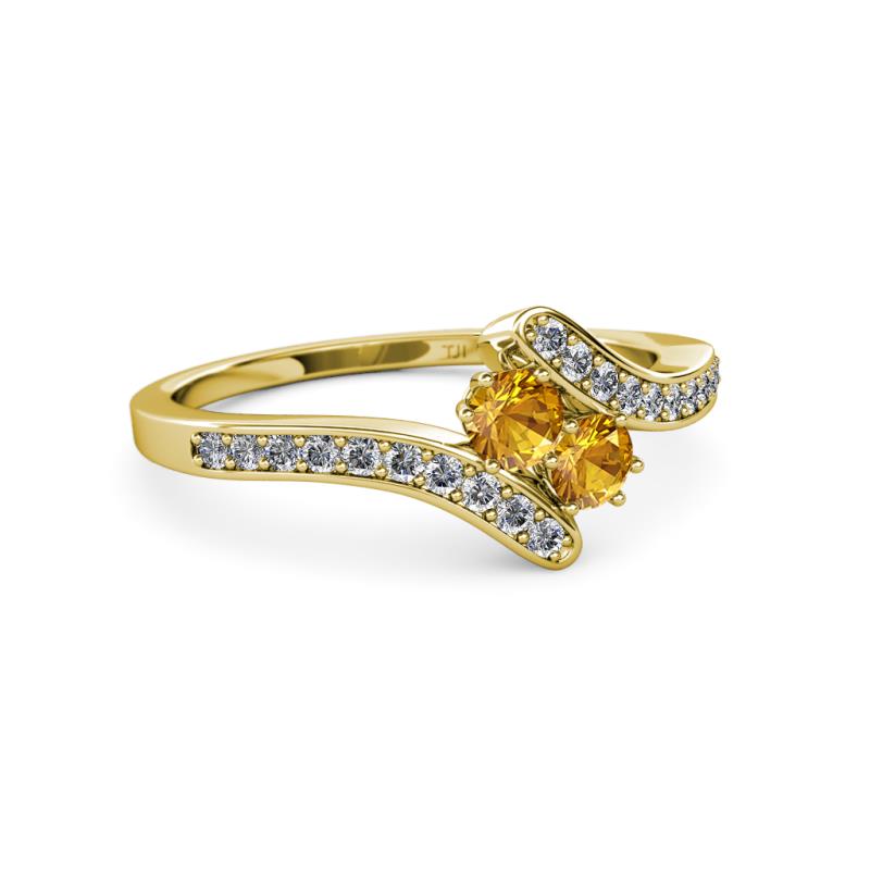 Citrine 2 Stone with Side Diamonds Womens Bypass Engagement Ring 0.66 ctw 14K Yellow Gold More Details ...