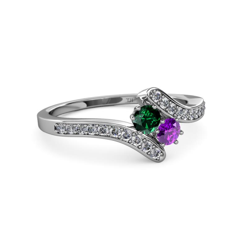 Emerald and Amethyst 2 Stone with Side Diamonds Womens Bypass Engagement Ring 0.66 ctw 14K White Gold More Details ...
