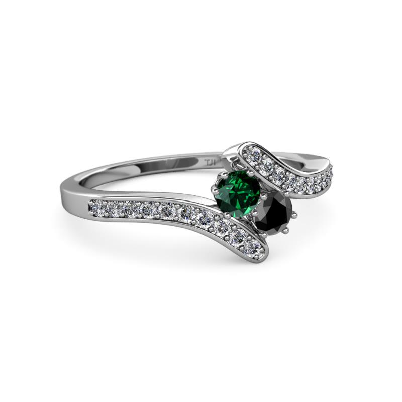 Designed with a meaningful expression of love, this Ring have mesmerizing combination of Emerald & Black Diamond which represents you & your loved one embraced by fascinating Diamond bypass shank symbolizing that your life revolves around each other.