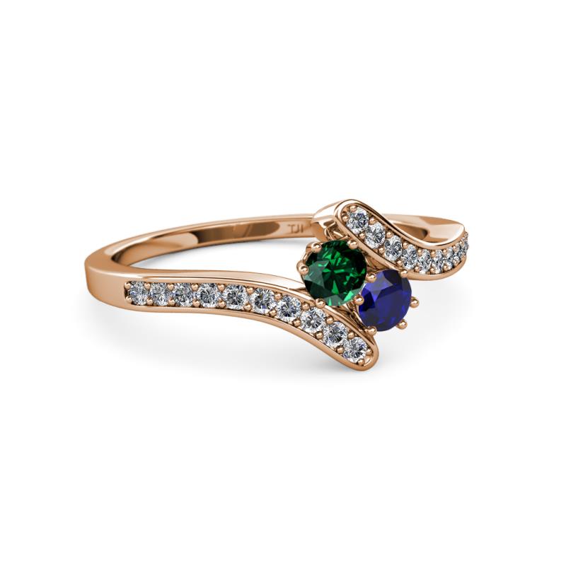 Emerald and Blue Sapphire 2 Stone with Side Diamonds Womens Bypass Engagement Ring 0.69 ctw 14K Rose Gold More Details ...