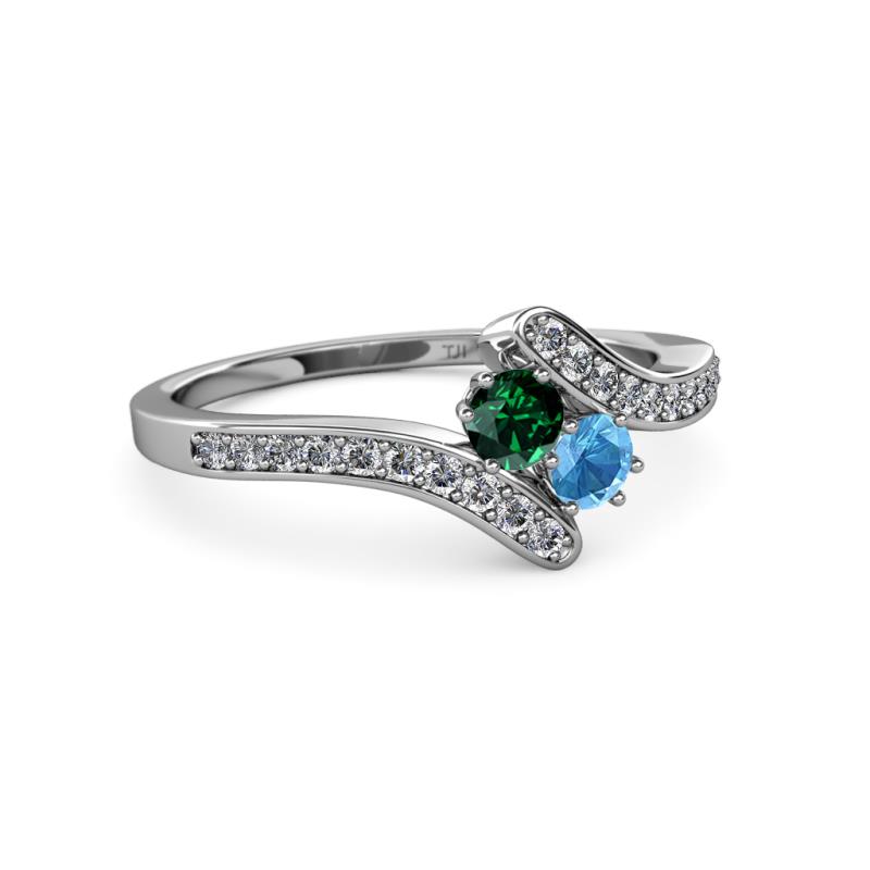 Emerald and Blue Topaz 2 Stone with Side Diamonds Womens Bypass Engagement Ring 0.70 ctw 14K White Gold More Details ...