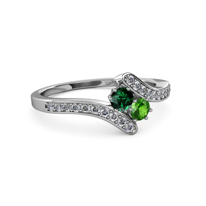 Emerald and Green Garnet 2 Stone with Side Diamonds Womens Bypass Engagement Ring 0.71 ctw 14K White Gold More Details ...