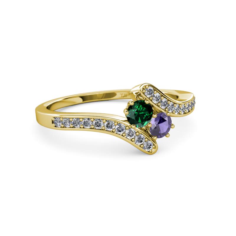 Emerald and Iolite 2 Stone with Side Diamonds Womens Bypass Engagement Ring 0.66 ctw 14K Yellow Gold More Details ...