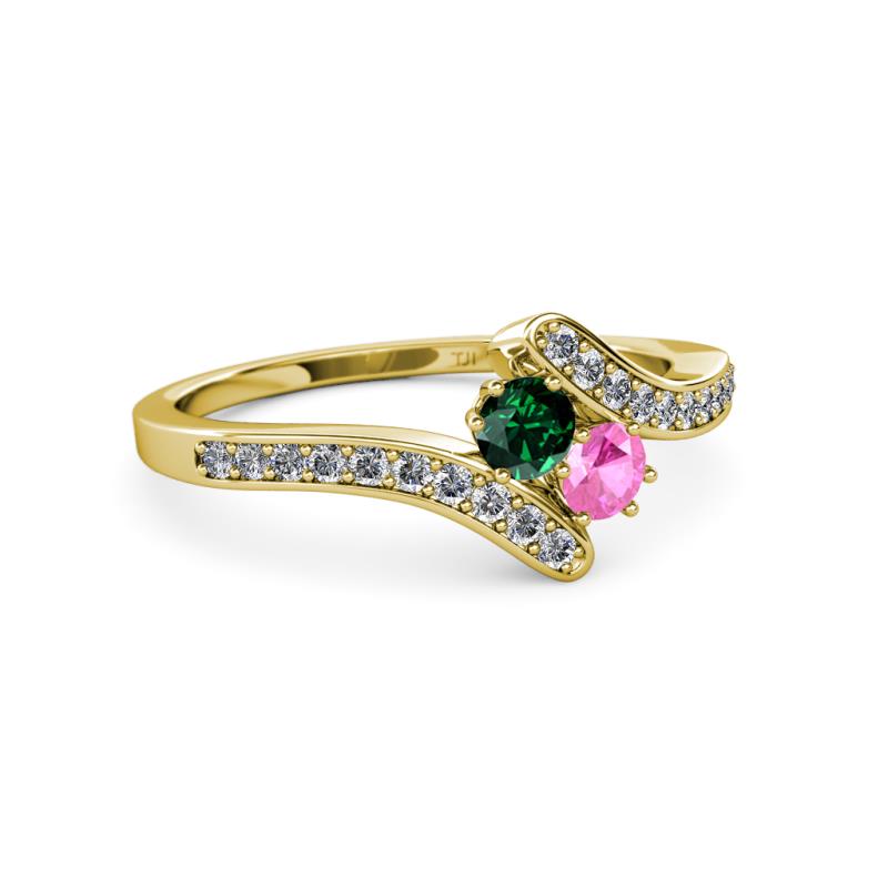 Emerald and Pink Sapphire 2 Stone with Side Diamonds Womens Bypass Engagement Ring 0.69 ctw 14K Yellow Gold More Details ...