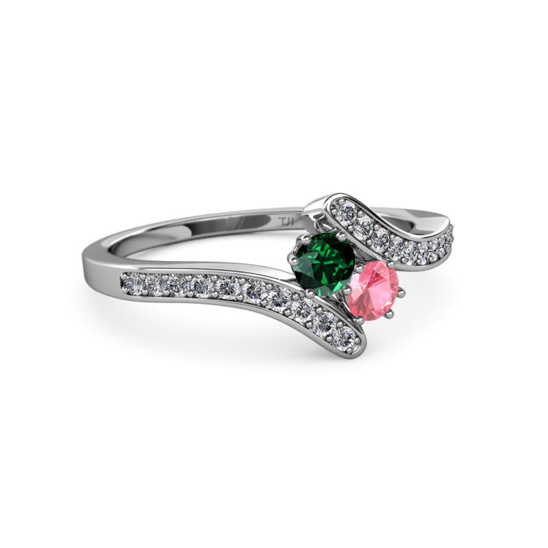 Emerald and Pink Tourmaline 2 Stone with Side Diamonds Womens Bypass Engagement Ring 0.66 ctw 14K White Gold More Details ...