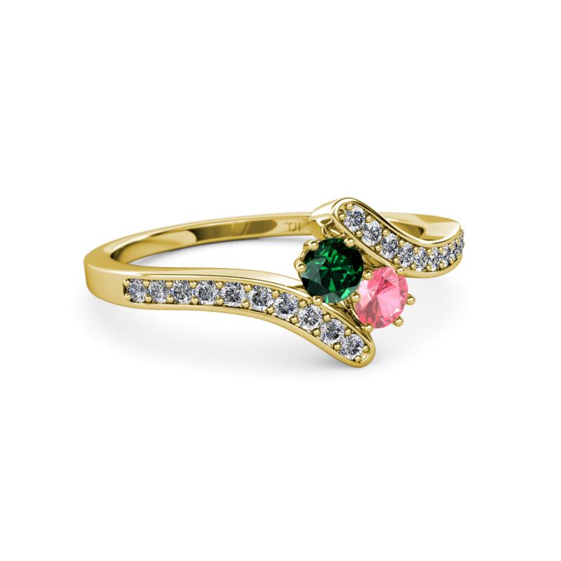 Emerald and Pink Tourmaline 2 Stone with Side Diamonds Womens Bypass Engagement Ring 0.66 ctw 14K Yellow Gold More Details ...