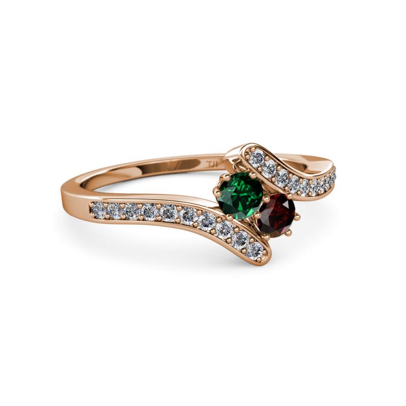 Emerald and Red Garnet 2 Stone with Side Diamonds Womens Bypass Engagement Ring 0.71 ctw 14K Rose Gold More Details ...