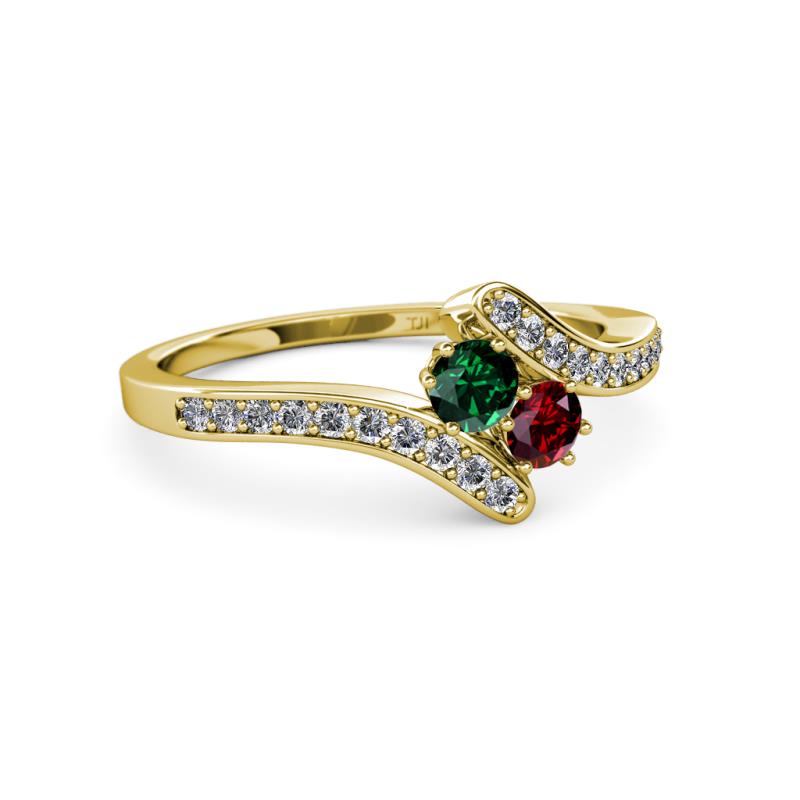 Emerald and Ruby 2 Stone with Side Diamonds Womens Bypass Engagement Ring 0.69 ctw 14K Yellow Gold More Details ...