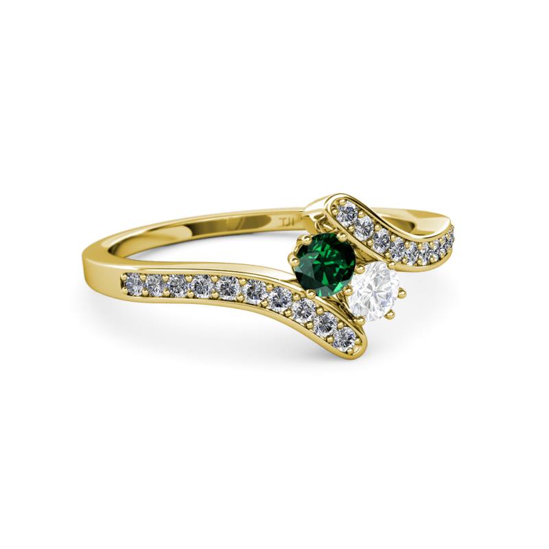 Emerald and White Sapphire 2 Stone with Side Diamonds Womens Bypass Engagement Ring 0.69 ctw 14K Yellow Gold More Details ...