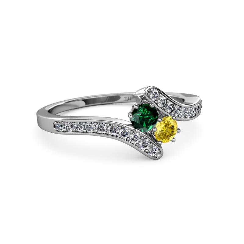 Emerald and Yellow Sapphire 2 Stone with Side Diamonds Womens Bypass Engagement Ring 0.69 ctw 14K White Gold More Details ...