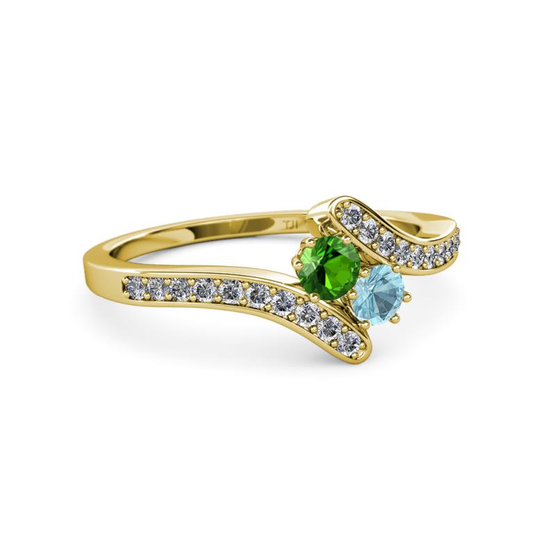 Green Garnet and Aquamarine 2 Stone with Side Diamonds Womens Bypass Engagement Ring 0.71 ctw 14K Yellow Gold More Details ...