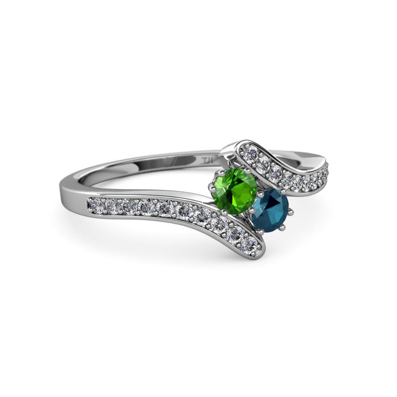 Green Garnet and Blue Diamond 2 Stone with Side Diamonds Womens Bypass Engagement Ring 0.73 ctw 14K White Gold More Details ...