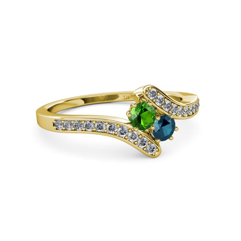 Green Garnet and Blue Diamond 2 Stone with Side Diamonds Womens Bypass Engagement Ring 0.73 ctw 14K Yellow Gold More Details ...