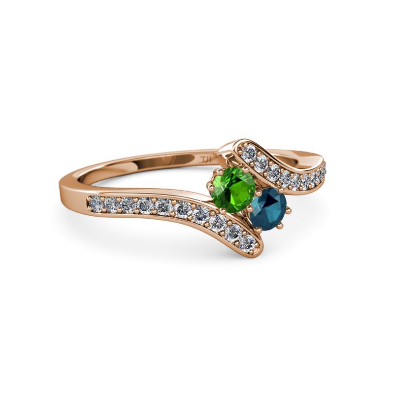 Green Garnet and Blue Diamond 2 Stone with Side Diamonds Womens Bypass Engagement Ring 0.73 ctw 14K Rose Gold More Details ...