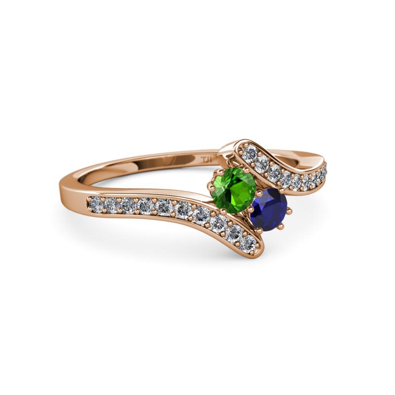 Green Garnet and Blue Sapphire 2 Stone with Side Diamonds Womens Bypass Engagement Ring 0.74 ctw 14K Rose Gold More Details ...